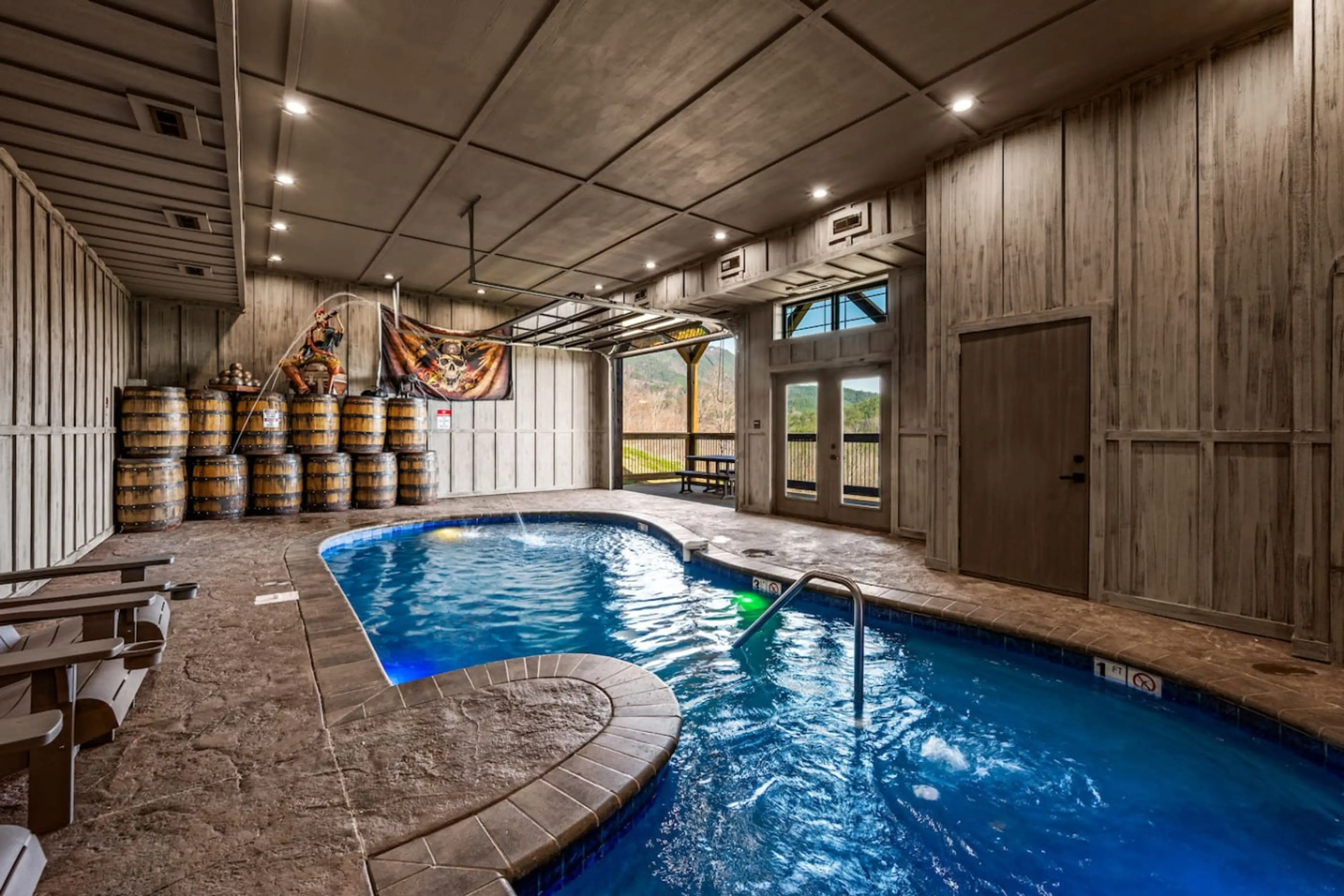 Embark on an unforgettable adventure at Treasure Cove, a one-of-a-kind Smoky Mountain retreat! This spacious cabin sleeps up to 18 and features a pirate-themed indoor pool, relaxing hot tub, and private theater for endless entertainment. Enjoy breathtaking mountain views from the deck while making u...